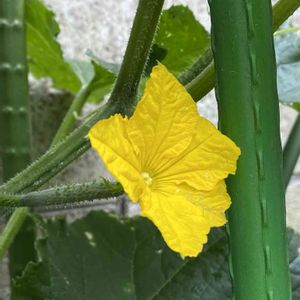 今日のお花 キュウリの雄花 ☔の日が多い為か、それともマンション⚫階のためか、受粉せずに雌花は全部ダメになってます😢 雄花と雌花、別々だと受粉しにくいのかなぁ でも、ゴーヤはいくつか出来たよなぁ ベランダのどこに置いているか問題❓❓❓ ちなみに、極早生のキュウリは何か病気なって 高みに上がりました 収穫出来た本数は3本だけでした