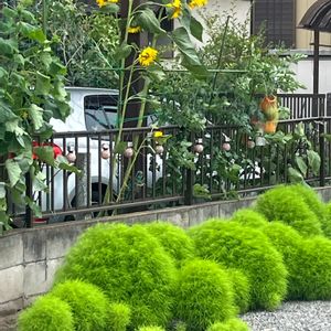 ご近所さんの家🏠です。 コキアがとっても立派です😊 よ〜く👀見ると、児玉スイカ🍉がなっています❣️😊🤗💕💖