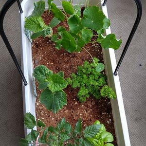コンパニオンプランターその2 サントリーさんの本気野菜シリーズ きゅうり2種類とミニトマト(赤)に バジル、パセリ、ナスタチウム ナスタチウムが予想外に元気&きゅうりの日当たりを悪くしそう💦 アレコレと欲張りすぎたかな 週末、ナスタチウムは別の鉢へ引越しさせた方がよさげです😓