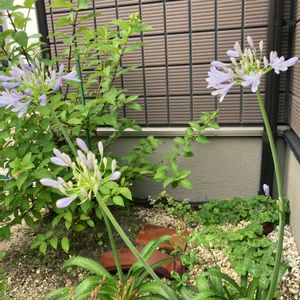 神奈川も梅雨らしい気候で ジメジメしてます お庭のお花 1枚目のお花は何という名前かわからないのですが、他の方のお庭で咲いているのをみて欲しい!と思っていたら偶然、ホームセンターの片隅に追いやられていたものを引き取ったものです。 アガパンサスと家庭菜園のきゅうりがなっていて楽しみ😊