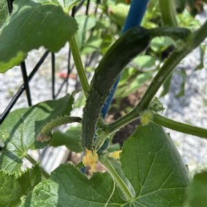 1枚目・2枚目は昨日の様子 3枚目が今日の収穫前の様子 実🥒が大きくなり出すと 1日過ぎるだけでかなり大きくなるので あと1日待つかどうか迷います 今回は1日待ってよかったようです 実が曲がるのは、水や肥料が足らない影響があるので、追肥もしていかないといけないですね🚿