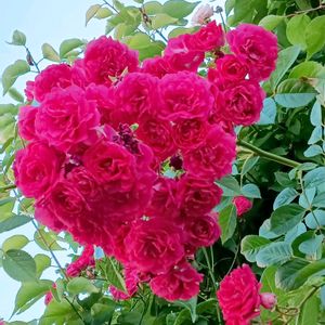 おはようございます(⌒▽⌒) キングローズです💕 ほぼ満開になってきました♪ 小さな薔薇が房咲きになって うつむき加減に咲きます💖✨😍 目に痛いくらいの濃いピンク 細かい花びらがパラパラと 散るのも可愛いです✨✨❣️(*´꒳`*) 掃除は大変🧹🧹🧹