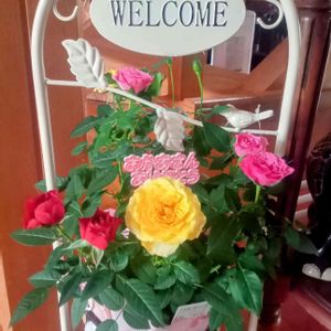 実家の母に、母の日のプレゼントしたミニ薔薇🌹✨ 玄関に飾ってくれてた🙌🙌🙌 母から一言👍この一年で、アンタはどれだけ観葉植物増やしたとね😓🌀💦私に似たばいね〜🙄とな😂😂😂あはははは👏👏👏