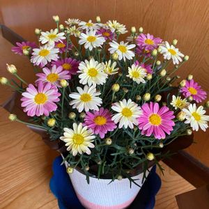 『 母の日 』 早めに頂きました🎵 カーネーションとマーガレット、 スパークリングタイム🌱 早速、植えつけました☺️ ありがとね💗