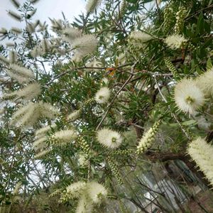カリステモン ブラシの木 淡いピンクと白。よく見かける真っ赤な物とは全く違った印象です。