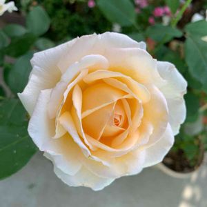 梅雨で雨で少し傷み気味なバラの薫乃さんが久しぶりに開花しました! さきはじめのクリーミーなイエローアプリコットな色合いが好きです。 樹勢がやっぱり弱い感じがどうしてもします。日当たりと風通しの良い軒下がベストポジションです。