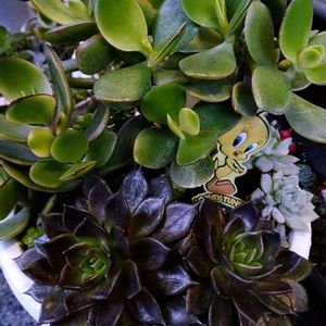 お外組❕ ①多肉寄せ植え。もりもり。ルビーネックレスがクレーム言ってる。 ②アガベ笹の雪の子株を発見!アガベで初の子株でテンション上がった ③斑入り金のなる木。季節になってきて黄色味が増してきた。 ④アエオニウムキウイ。こちらも子株が湧いてきた、ちょっと白くなってきた。綺麗な色になるのが待ち遠しい ⑤火祭りの花!早く真っ赤な姿を見たい🔥