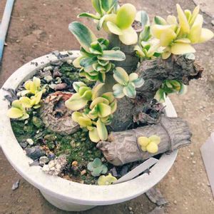 麻布で巻いてただけの金のなる木を藤箱をリメイクして植木鉢に仕立ててみました 古い土を少し払ってたらナメクジが出てきたので忌避剤撒いときました