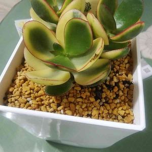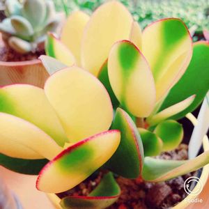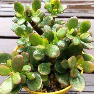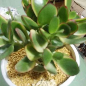 おはようございます☔️ ✨黄金花月✨ 今年1月に購入後 先をカットして寄せ植えに 使ったり、小苗を作りました。 4ヶ月で新しい葉が出て可愛くなってきましたよ💓 葉の周りが赤くなってくれるのを待っていますが 秋にならないとダメかな? 雨に濡れてピカピカ✨綺麗です