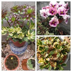 ↗️本日のパンジー💖ブリブリ ↘️寒波にヤラれ…✄チョンパ緊急オペした子 何とか復活👍チビちゃんが😍デタ 前に挿木した黒法師と黄金花月✨ 貫禄ついてきました🤭