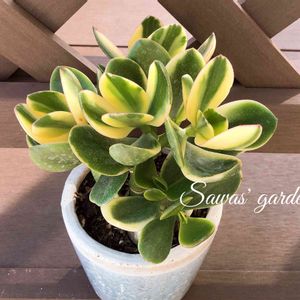 庭仕事しやすい時期ですが、 この時間庭に出るともう寒い😵 写真撮って部屋に戻ります。 黄金花月の葉挿しちゃんです😊 ちっちゃくても斑入り💕