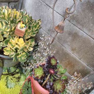 今日の千葉は暴風です💦 家に帰ってきたら、台風でも飛ばなかった突っ張りタイプの洗濯竿が倒れてる。 ベランダは倒れた多肉達でいっぱい💦 でも竿が3階から下に落ちなくてよかった:(∩´﹏`∩): 気を取り直して。。。 職場花壇に植えてから虫にかじられた黄金花月\(´ω` )/♡ 復活してました✨ この子は亡くなった祖母が育ててた多肉✨ 祖母庭からカットしてきた子を育てて更にカットして職場に☺️ よかった💕