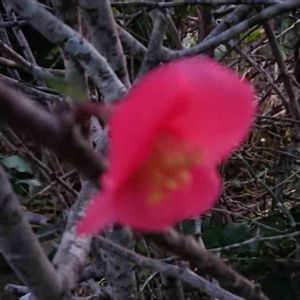ぼけの花が咲いてました🤗 ボサボサの庭にトゲトゲが悩ましい。。。