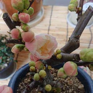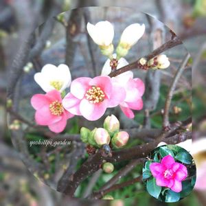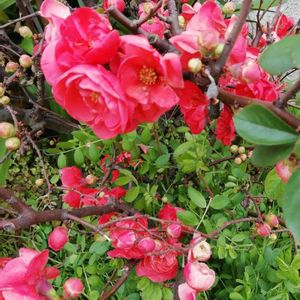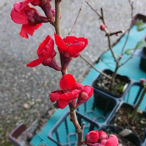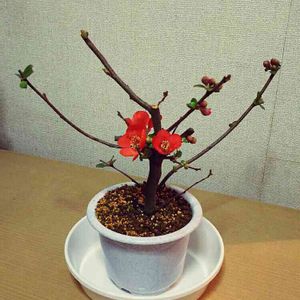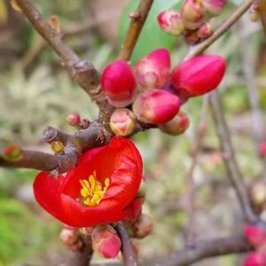 木瓜(ボケ)❤ 小さくて細い枝に沢山の蕾を付けて咲いてくれました🌼