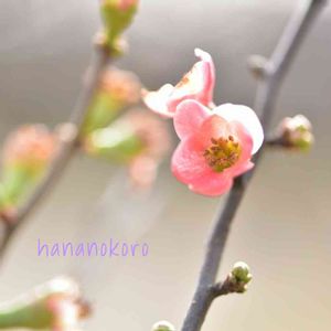 通りがけで見つけたお花❀.*・゚ なんのお花かなぁと調べたらバラ科のボケ(木瓜)でした❀.*・゚ 梅に似てて小さくてツボミも可愛い♡ ・ 花言葉は「妖精の輝き」「一目ぼれ」「熱情」「早熟」「魅惑的な恋」です。 妖精の輝きとは可愛い花言葉だなぁ…♡