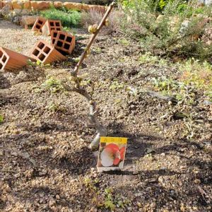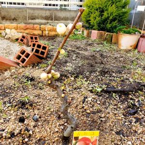 母がボケを買ってくれたので、早速リビングから見える位置に植えました❗ 大きくな~れ‼️
