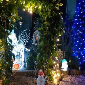 毎年自分でかざるおうちイルミネーションを一人で楽しんでます(*´・ω・)トケイソウのアーチのイルミネーションが、葉っぱしげってて見えない(>_<)
