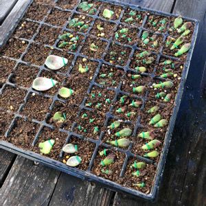 2回目の葉挿しトレーpicです 親株の鉢で発根初芽を待ってたら だいぶ発根されたのでトレーに移植 右縦2列 エメラルドグリーン その左(3列目)スノージェイド(5マス) 5マスの下は名無し←多分エケベリア? 4列目 レティジア 5列目(3マス)サンライズマム 5列目 1枚ずつは パープルディライト 葉が飛んでいかないように 園芸ワイヤーで一応とめました 昨日の葉挿しトレーの苗も同じくしたけど 細かい作業で疲れました笑