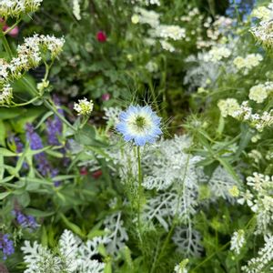 オハヨウゴザイマス〜🙏 水無月(12日)木曜日(☀後☁後☂️後☁)の予報〜 今日の天気は目まぐるしい天気の様デス〜😱😵😫😰 日にちが変わってしまいましたが…サンカさせて下さいネ~👍👌✌️🙏🥰😍🤩😉 ご近所さんのお写ん歩〜 ①〜④まで〜 (🤳📱は全て〜6/7日) ①…❀ニゲラ(クロタネソウ)  キンポウゲ科      クロタネソウ属 1年草   原産地  南ヨ~ロッパ       北アメリカ この植物の一般名「霧の中の愛」は花が多裂したレ〜ス状の苞葉は輪の中に収まっていることに由来する 高さ   40〜100cm 和名  「クロタネソウ」       (黒種草) 花期   4月下旬〜7月上            旬 花色   白 ピンク 青      紫  複色 ②…❀カシワバアジサイ  アジサイ科  :  属 落葉低木 原産地   北米東南部 花の色     白 和名   「柏葉紫陽花」    (カシワバアジサイ) 葉の形がカシワに似ていることが和名の由来 花は円錐状にあるいはピラミッド状に付く独自の形状をしている 花期    5〜7月 真っ白い花を付ける八重咲きと一重咲きがある 樹高   50〜200cm 花が少ないのが特徴 秋には紅葉する     ➕️ ご近所さんの🐩ちゃんで〜プ〜ちゃんでㇲ〜今回は〜旦那さんに抱かれてまㇲ〜 旦那さんは〜余り好きで無い様な…⁇⁇ 奥さんの時と段違いだった~(笑)(笑) 🏷️白い水曜日♡ 🏷️純白マニア 🏷️白 しろ ホワイト 🏷️白い花 ④…❀ニゲラ(クロタネソウ)   ①番で💬してますので割愛させて戴きマス~…悪しからず…🙏🙏🙏    ➕️ ご近所さんの🐩ちゃんの プ〜ちゃんでㇲ〜ちょっとカメラ目線貰えた✌️👍👌 🏷️コラ〜ジュ 🏷️コラ〜ジュ仲間達 ⑤…娘からのLINE〜  淡路ファ〜ムパ〜ク   〜イングランドの丘〜 (5/26日娘と孫達で〜運動会の代休にて~学校の友人達で〜🎶🎵 🐇➕️バラ🌹薔薇🌹ばら🌹 🏷️うさぴょん🐇祭り 🏷️ばら🌹バラ🌹薔薇🌹 にサンカさせて戴きマス~🙏🥰 梅雨入りしてから〜天気は☂️が続きましたが…何とか〜頑張って行き(生き)まッしょ〜イ〜💪💪💪👍🥰 ③…❀オルレア (オルラヤ)  セリ科   オルレア属 1年草  草花 切り花 草丈   60〜100cm 花色   白 花期   3〜7月 原産地  ヨ~ロッパ 別名   「花飾芹」     (ハナカザリゼリ) (ホワイトレ〜スフラワ〜) (ホワイトレ〜スソウ) 英名 「White lace              flower」  「Large−flower orIaya」 「Minoan. lace」 学名 「grandiflord」