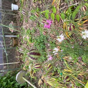 🪴草花たち その12 ニゲラの果実(実・種) GSでニゲラの果実を見て、 そう言えば、どうなってるかな? と、ニゲラが咲いていた場所へ見に行ったら、幾つか、 風船のようになっていました。 ( ´ ▽ ` )ノ♬ ⚠️ニゲラ・サティバは香辛料、薬用になる。 ニゲラ・サティバ以外は有毒