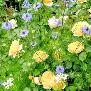 バラの庭 ニゲラと黄色いバラの色あいに癒されて!!