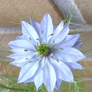 ブルー🩵のニゲラ、咲きました😆🎉 八重でした〜✨ 最初は白っぽくて、だんだんブルー🩵になってきました。 もう少し濃い色💙になるのかな??