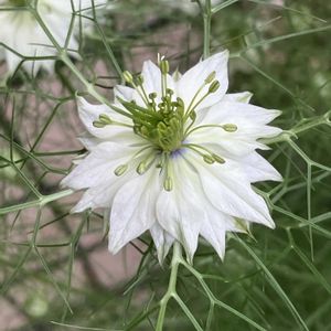 おはようございます🌿 ニゲラ🤍… 秋まきをして開花です。 発芽率が悪くて…💦 白だけでした。 4月にも蒔いてリベンジ。 他の色も咲いて ほしいです🩷🩵 今日も元気で➰😃