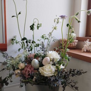 イースターのアレンジメント🌸 お部屋は暖かいし洗面所は奥行きが。。。 という事でこちらしか置く場所が😅 アレンジも楽しい💓