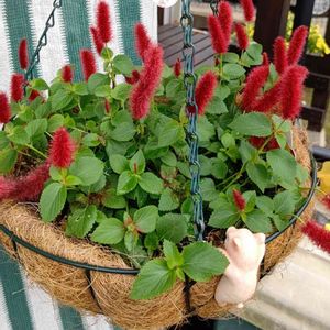 斑入りキャッツテール うだるような暑さの中、この葉っぱが涼しげ〜🌿 でもキャッツテールってすぐ水切れするので過去何度も失敗💧 今度こそ!と日陰に吊るしてしっかり水をやってます👍