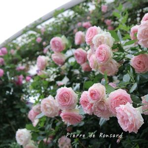 アーチ仕立て フランス生まれの ブルボンオールドローズ2種 ルイーズオディエ と、 マダムイザークペレール どちらも、クシュッと巻き巻きのカップ咲きの姿が堪らない オールドローズなので香り高く どちらもラズベリーが入る ルイーズオディエは癌腫になって4年…それでも枯れる事無く元気に咲いているところが健気だ 今年も素敵にアーチを飾ってくれている薔薇に感謝を捧げる