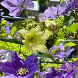 2025.7.17 Thursday 🌤️ 久しぶりのお日様と青空になりました♡ 気温は高いけど… 今日のお花のクレマチス ありました! 5月に出会った美しい紫色のクレマチスと大分前にお連れしたクレマチスペトリエイです。 筑波実験植物園ではクレマチス展が毎年開催されていますが、あまりにもたくさんのクレマチスでびっくりします。今年はクレマチス展の会場脇を通り、バラ園のアーチに絡むクレマチスを眺めました。 真ん中のみどり色のお花は、クレマチス ペトリエイです。たくさんのお花を咲かせてくれました(今はアルバムの中での思い出です) 久しぶりにクレマチスのお花を見ると、育ててみたいなぁ〜とも思いますが、種類が多くて迷ってしまって買えなくなりそう… 蔓性植物の女王👸というそうですね。 女王さまをお迎えできるかなぁ〜?眺めるだけがいいかなぁ〜 暫く迷ってみようかな…