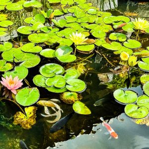 源平合戦の古戦場の須磨寺境内の小さな池で見つけました。 池の鯉も優雅に泳いで居たので一緒に撮りました。
