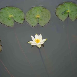 睡蓮(スイレン)/未草(ヒツジグサ) スイレン科スイレン属の多年草。平地の池や沼から高層湿原などの沼地まで広範囲に分布する浮葉植物。地下茎は太く短い。葉は根生し、長柄があり、基部は深い心形で、水面に浮かぶ。秋に美しく紅葉する。花期は6~9月。花は根生する長い花柄の先に1個頂生する。白色で直径約5㎝、花弁は8~15個、萼片は4個。日中に開いて夜になると閉じる開閉運動を3~6日続けて花が終わる。花のあと水中で球形の液果が成熟する。 未の刻(午後2時頃)に花が咲くというのが名の由来。だが、花は午前中に開花する。天候が整えば午前11時頃開花する。花が夕方から朝まで閉じることから『睡蓮』の別名もある。 出典『山に咲く花』『夏の野草』