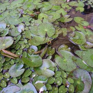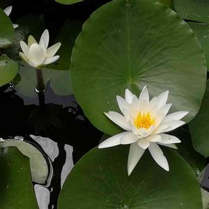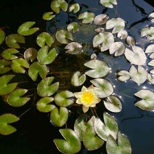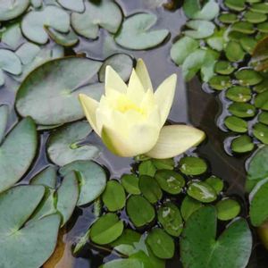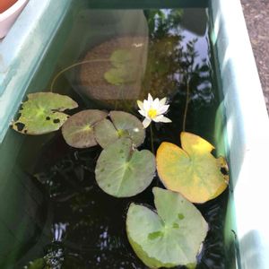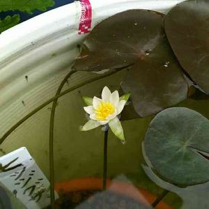 鉢植えして庭の池に沈めたままのスイレンが今年も咲いてくれてます♪ これは原種の「ヒツジグサ」
