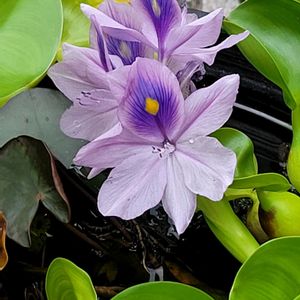 散歩中に見かけた水辺(火鉢ですが)のお花たち🌸 中でメダカが、スイスイ泳いでました🎶
