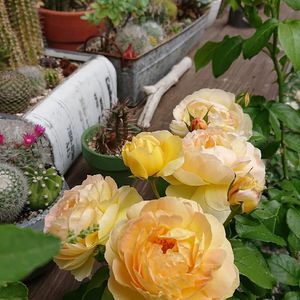 風が強くて鉢が倒れるのでサボテンゾーンに避難してきました。 濃い黄色?オレンジ?から退色してグラデーションになるのがとっても可愛い❤️バサっ!と落ちます…