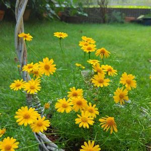 こんばんは☺️ 今日も一日お疲れさまでした🤗 季節は秋のお彼岸だと言うのに… 気温は30℃越えの暑さでした😥 お墓のお掃除・お墓参りと… 汗だくの一日でした💦が 今は網み戸から入る風はヒンヤリとして 鈴虫の声と相まって秋の夜を感じます🤭 ☘️ダールベルグデイジー☘️を 篭寄せしてみました♪😋