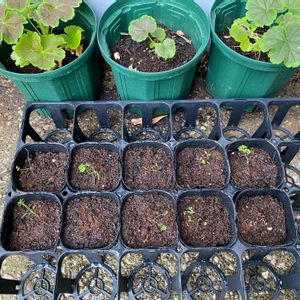 〜ʕ•ᴥ•ʔ{種から育てている黒い葉のゼラニウムと、こぼれ種から出てきたダウカスダラの芽です!