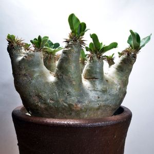 花を咲かせたあと順調に葉を展開しているパキポディウム・エブレネウムです。