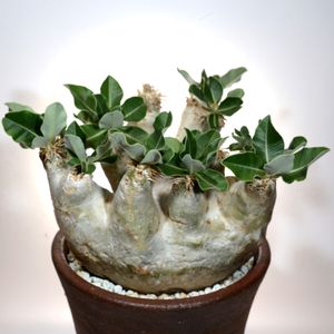 マダガスカル出身のパキポディウム・エブレネウムです。エブレネウムらしい絶壁状の塊根です。