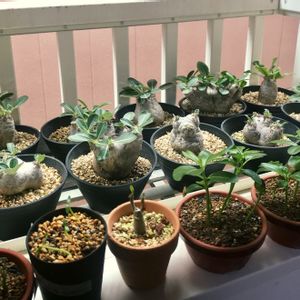 Pachypodium eburneum うっすーい黄色の花が咲いたら、エブレネウム 普通に黄色の花がさいたら、ブレビカウレの恵比寿笑い🤔