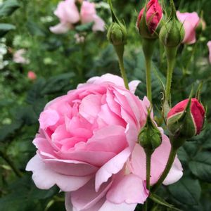 今日の朝はとても多くの雲があり、1日どんよりした日になりそうです☁️ うちの庭も寂しくなってきました💧 ピンク色が可愛いイングリッシュローズのセプタードアイルです🌹 小さめのこの薔薇、清楚で可愛いお嬢さんみたいです😊