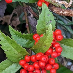 さんぽ道センリョウの実が真っ赤🔴になってました。 今朝は冷たく風が吹き🍂、散歩も早々に切り上げてきました。 帰り道センリョウの実の赤さ🔴に元気貰いました。