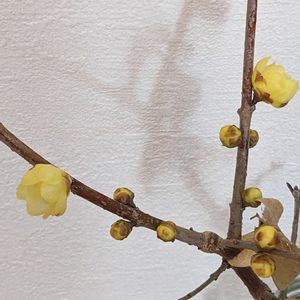 🧒👶🧑達と散歩中、プクっと膨らんだ【ロウバイ】の枝を取ってきて瓶に差しておきました。 今日の花【ロウバイ】に合わせて咲いてました🥰 透け感のある、蝋細工のような花は春を告げる花ね😍