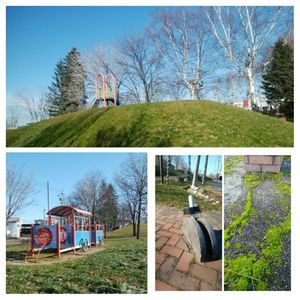 🐶ちゃんと散歩。 すっかり葉が落ちてます🍂 鉄道の廃線後に造られた緑地。 遊具、ミニアスレチック、 ベンチ、丘、樹々、花壇、夏には小さい噴水…🎵 雪が積もったら散歩出来なくなる所です❄ 今のうちに😄