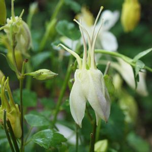 日中暑い中、こっそりカーテンを開けて庭をチェックしてみたら、何か白い物がヒラヒラ。またオダマキが咲いていました。