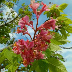 ベニバナトチノキ(紅花栃の木) らしいです。 まん丸な栃の実がなってました。 ひまわり丘公園撮影。 秋桜を見に行った時咲いてました。可愛い((o(。・ω・。)o))