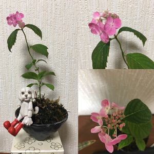 去年購入したヤマアジサイ。 🌸終わった苗だったから、ちゃんと育つのかと思いつつ。 なんちゃって盆栽風に見守ること1年。 可愛い🌸が咲いてくれました〜〜😊🎶🤗 小さくても紫陽花。