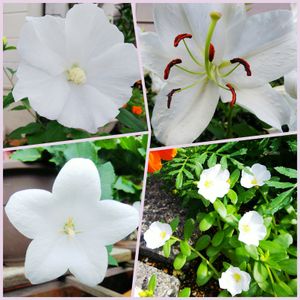 暑い日が続いています(^o^;) ♡ムクゲ♡キキョウ 🍀お隣のカサブランカ良い香り ♡ポーチュラカ 白い花がまぶしく綺麗です✨♡✨♡