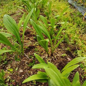ヒトビロ 行者にんにく 北海道から苗を持ってきて5年😅 昨年の猛暑で半分消えましたが今年は食べれそうです🤩